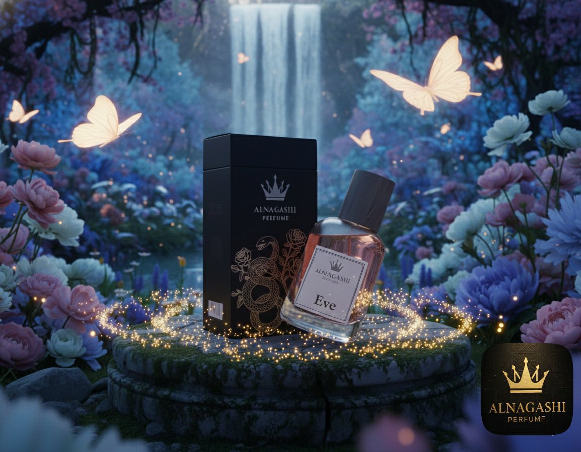 “Eve.. العطر الذي يسرق الأضواء ويحكي قصة أنوثتكِ بجرأة وفخامة.”